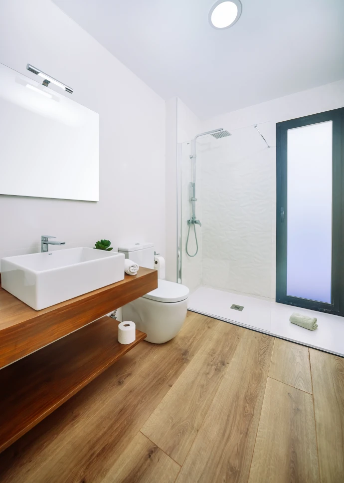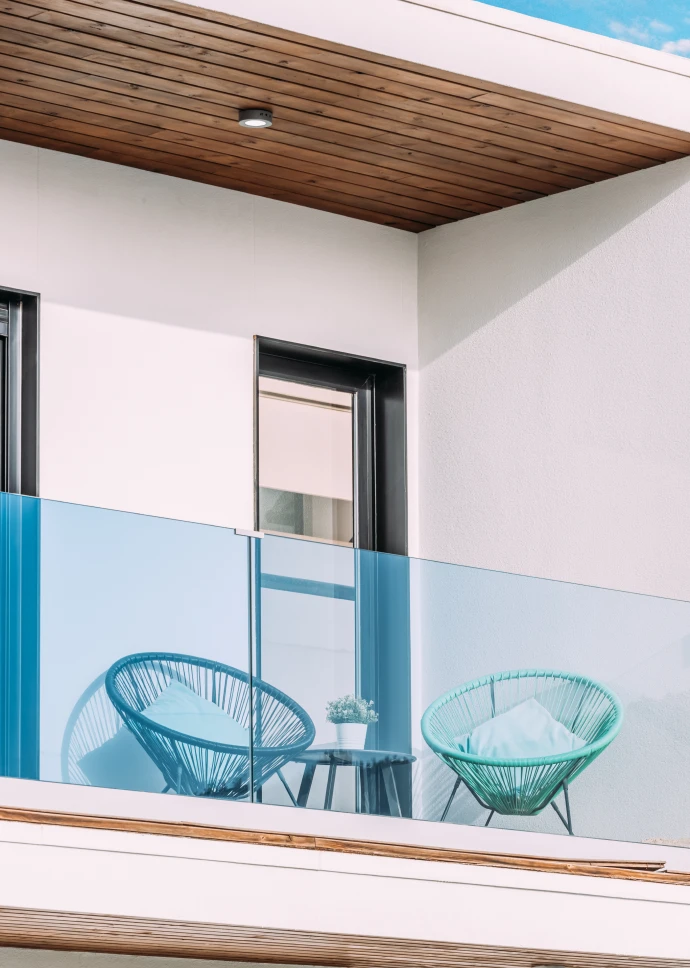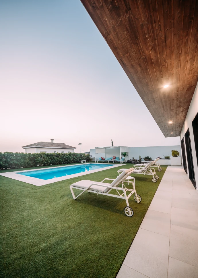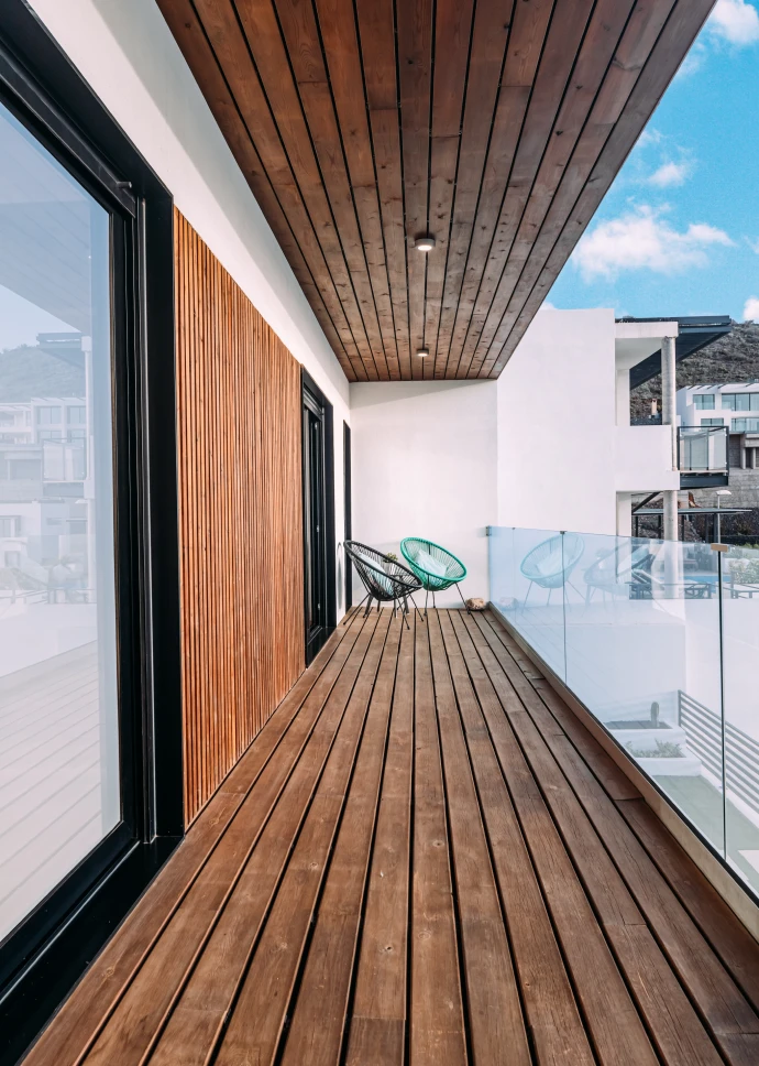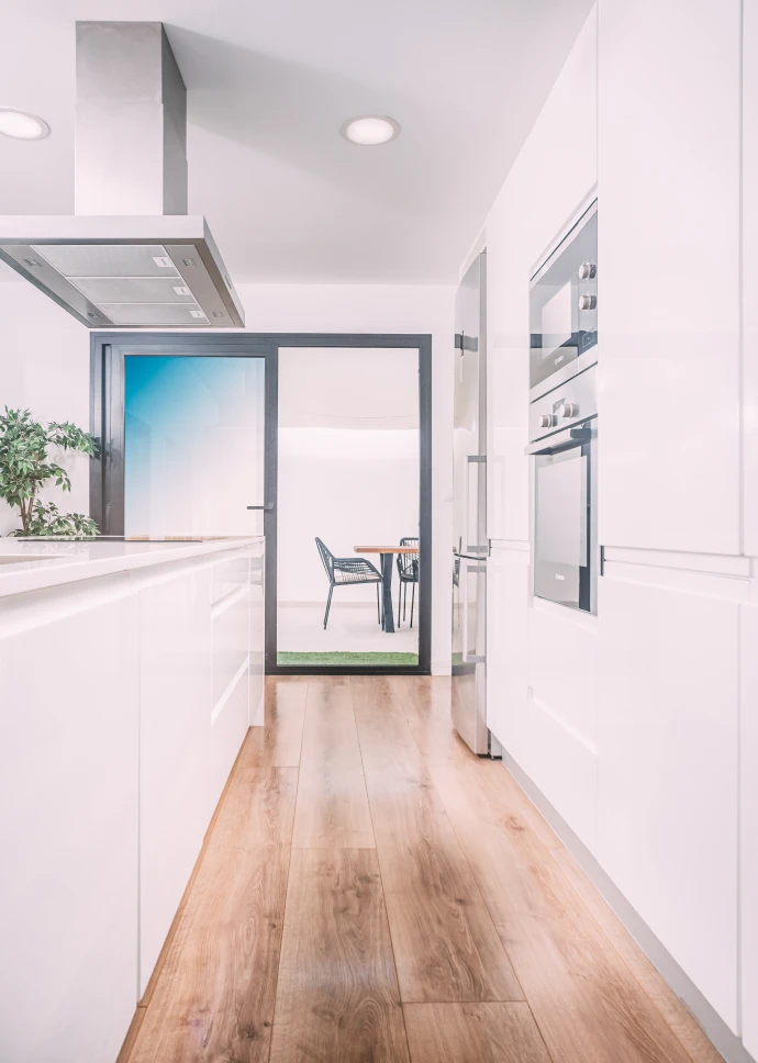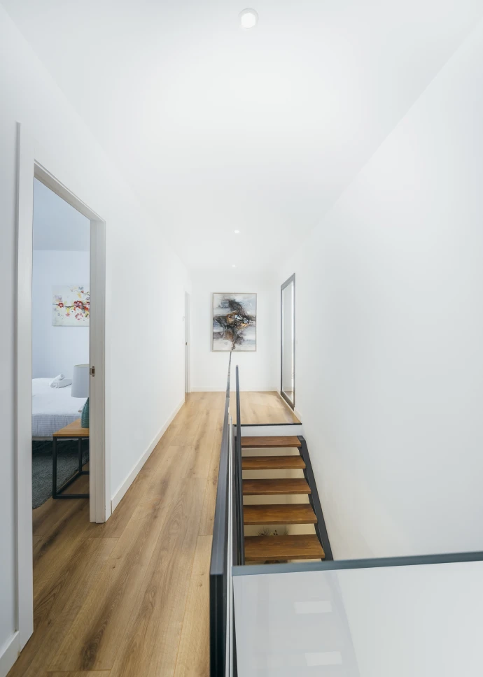 El diseño minimalista y moderno de la vivienda, junto con los materiales utilizados para el acabado, hacen que los espacios sean acogedores y cálidos, permitiendo a través de grandes cristaleras que el usuario disfrute de las vistas que ofrece la isla. Distribuida en dos plantas, cuenta con un amplio salón-comedor, cocina integrada con una gran isla central, tres baños, tres dormitorios y grandes terrazas. Sus espacios se caracterizan por ser luminosos, modernos y muy acogedores, ideales para cualquier estilo de vida.