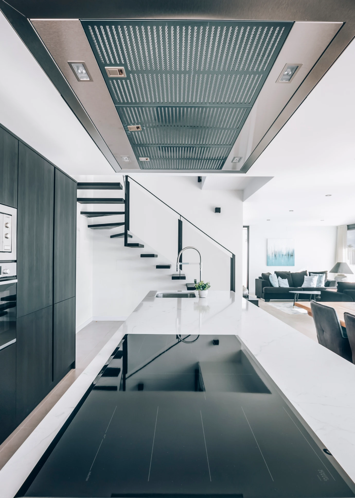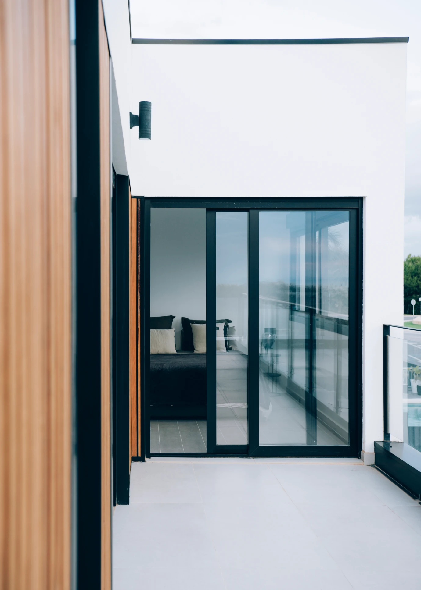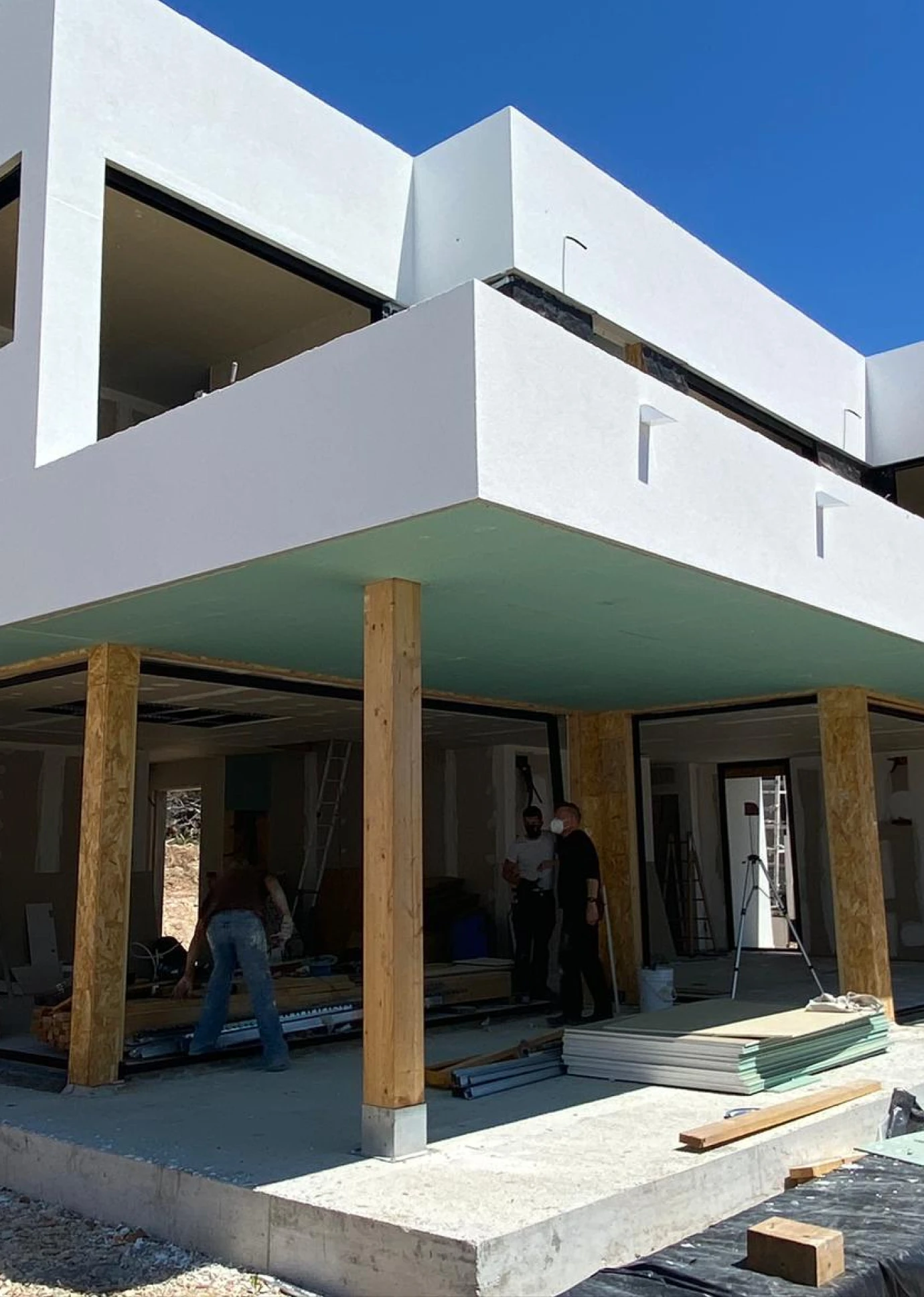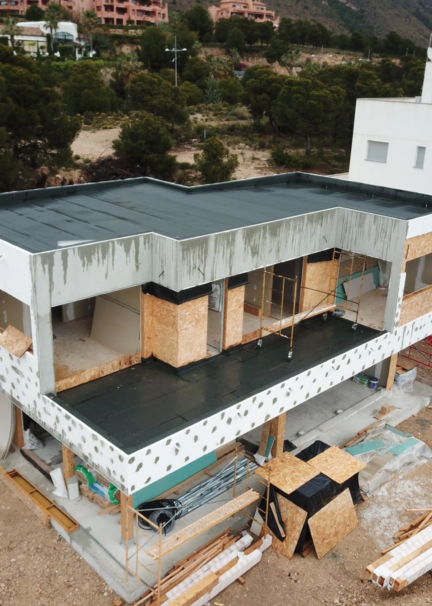 Esta hermosa vivienda, ubicada en el municipio de Finestrat, a tan solo 8 minutos de Benidorm, se caracteriza por su hermosa fachada que combina los materiales característicos del estilo LUMEK, SATE blanco y detalles en madera.
