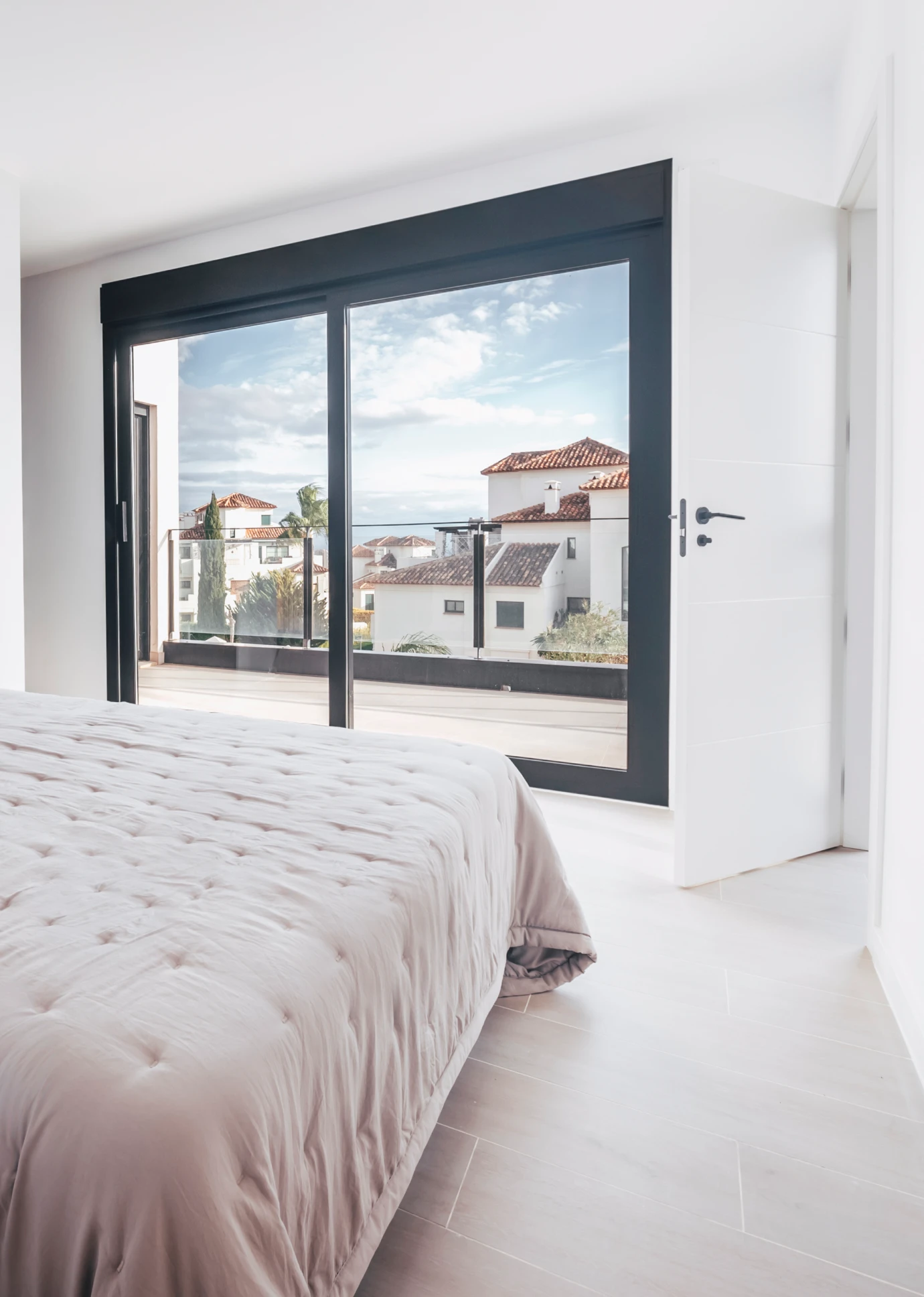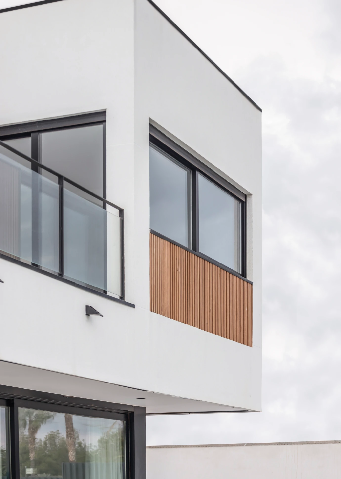 Esta vivienda cuida al mínimo detalle sus calidades, destacándose por su comodidad y elegancia. Está orientada hacia el sureste para aprovechar sus vistas espectaculares a través de sus grandes ventanales en planta baja y primera. En la fachadaposterior, sin embargo, encontramos ventanas más pequeñas y más superficie opaca de fachada.