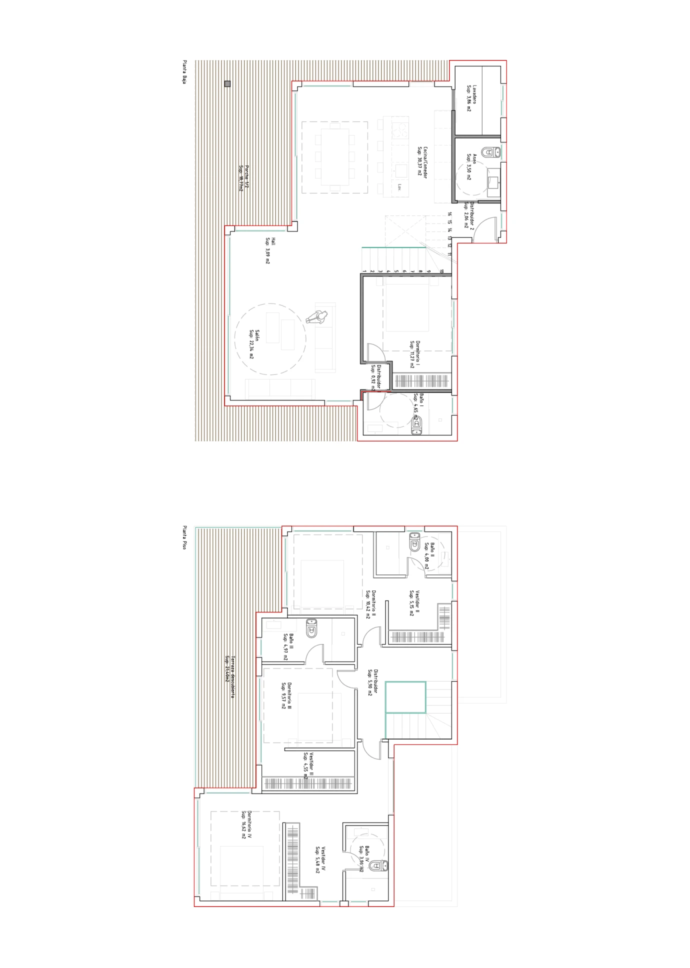 Con 200 m2 construidos, esta vivienda se distribuye en dos plantas. En la planta primera se encuentran las 3 habitaciones con sus respectivos vestidores y baños privados, mientras que en la planta baja se encuentra la zona de día, que incluye un gran salón, un comedor-cocina abierto, una gran terraza exterior y una piscina. Además, también se encuentra un pequeño dormitorio.